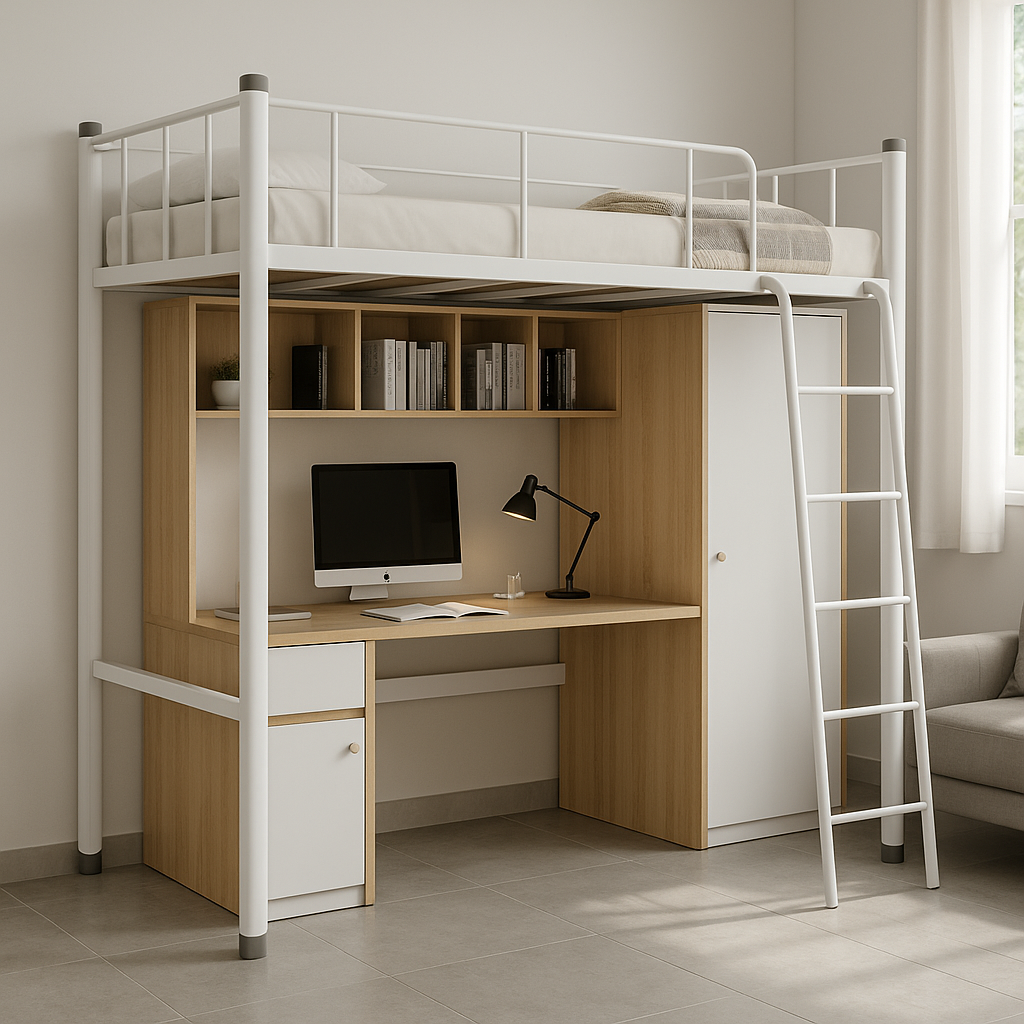 Convertible bed system with storage and integrated headboard features for modern bedrooms.